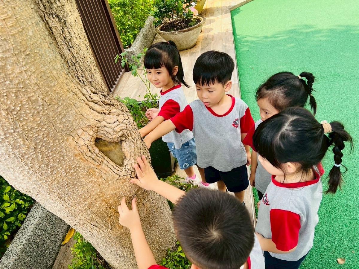 一片片綠葉在陽光下閃閃發亮,就像孩子純真的笑容;大樹張開溫柔的手臂,陪伴著孩子們在樹蔭下探索、遊玩,留下滿滿的回憶。