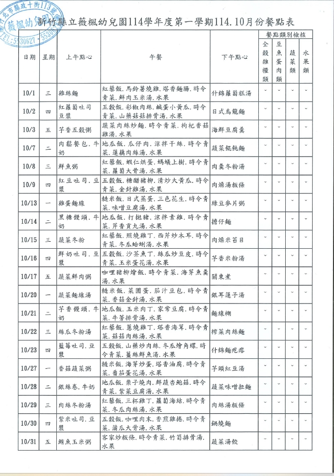 114.10月份營養餐點表