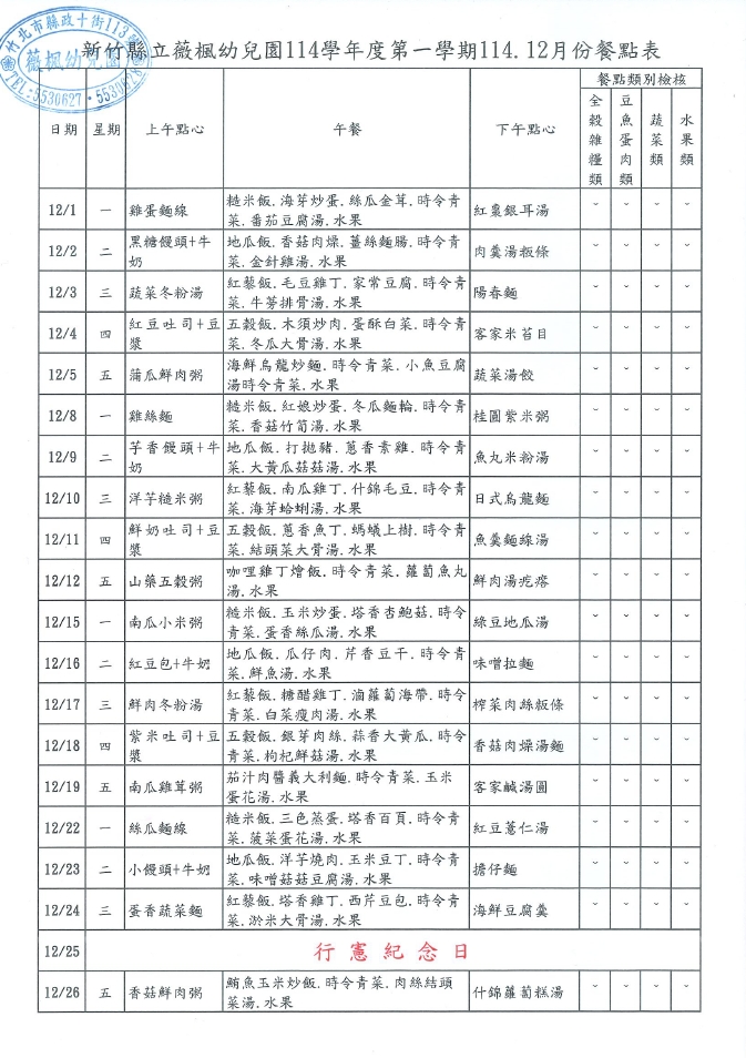 114.12月份營養餐點表