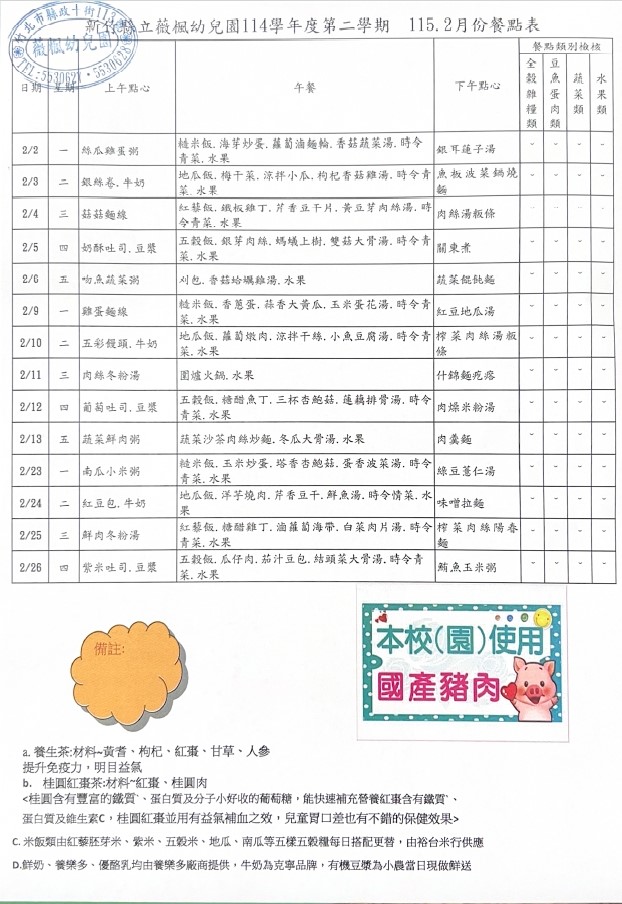 115.02月份營養餐點表