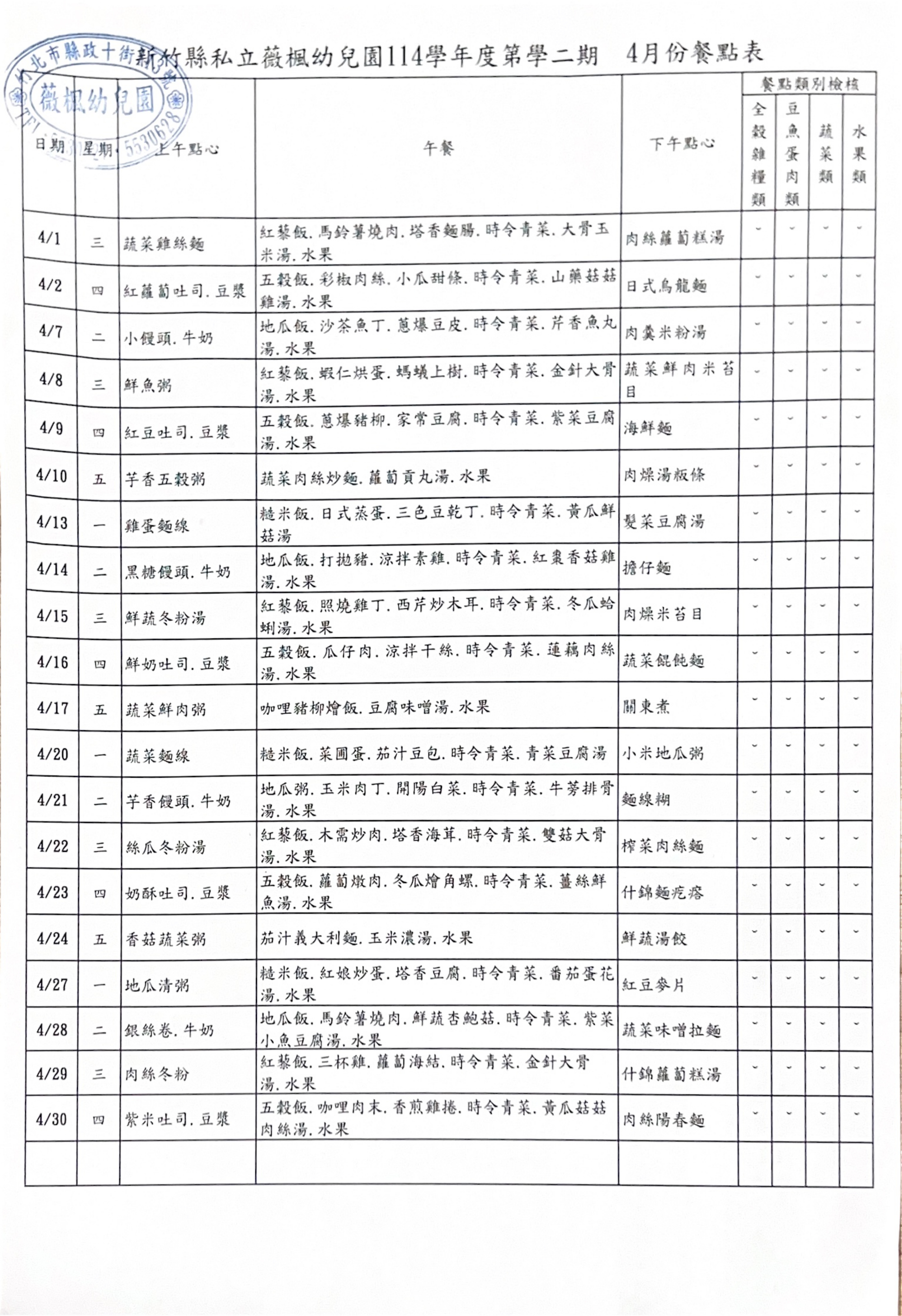 115.04月份營養餐點表